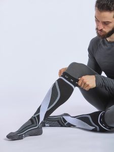 Calza alte sci compressione media lana merino e polipropilene Calze knee‑high in media compressione, abbrevia il tempo di recupero della…